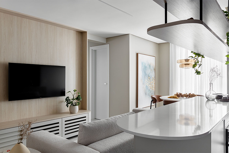 O projeto do apartamento 603 foi pensado como um refúgio de calma em meio ao ritmo urbano, trazendo mais leveza.