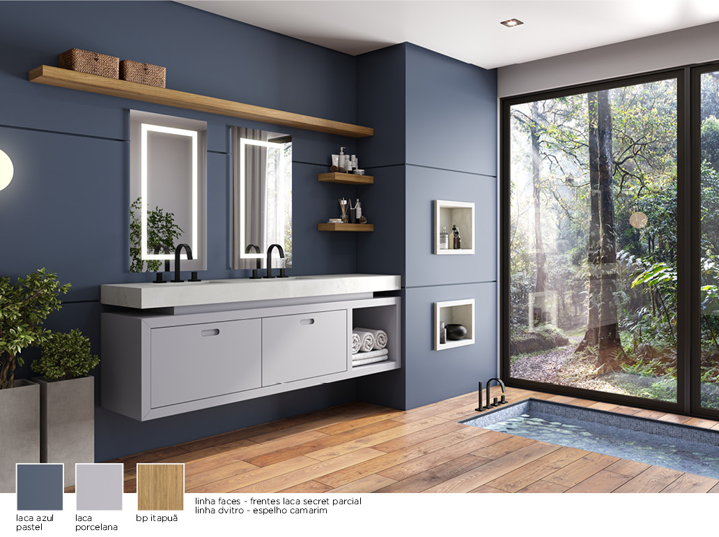 Las áreas húmedas exigen proyectos funcionales, con muebles resistentes y, al mismo tiempo, prácticos. Dalmóbile es la única empresa de Brasil que tiene en toda su línea los bordes fijados con adhesivo de PUR, que protege los muebles de la humedad.